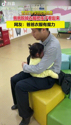 1歲多的女孩打完疫苗,哭得歇斯底裏,雙手緊緊抱著(zhe)爸爸,這時,爸爸脫下外套裹住女兒,瞬間止住瞭(le)女兒的哭泣。