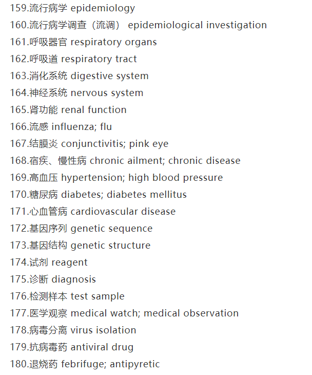 180條新型冠狀病毒肺炎疫情相關詞彙英文表達