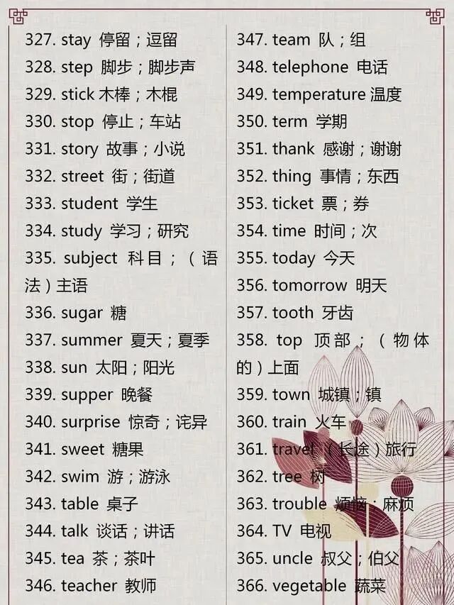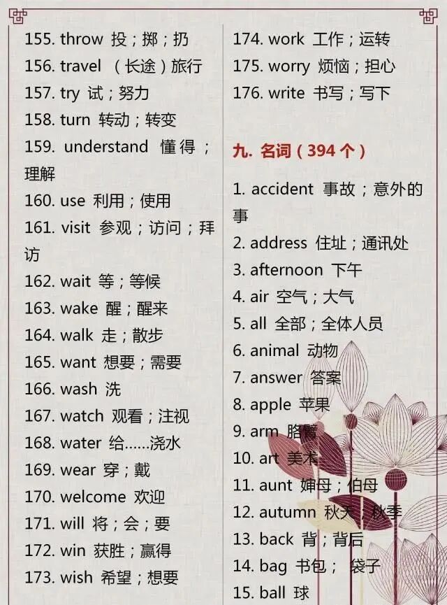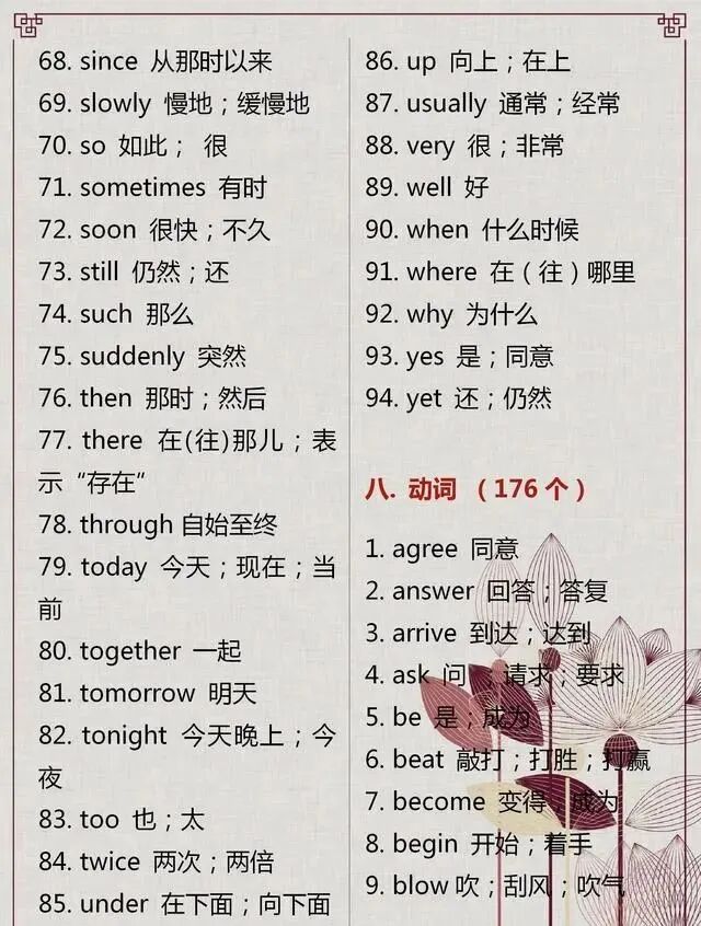 老師說這件事就是想告訴孩子們,學習是一件持之以恒的事情。今天分享給大家的這9類核心單詞,是按照詞性進行分類的,将近1000個。這些核心單詞是初中階段的孩子必須掌握的,下面一起來看看吧。