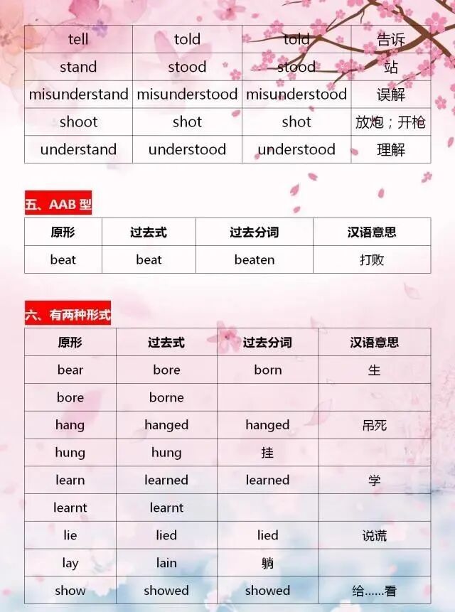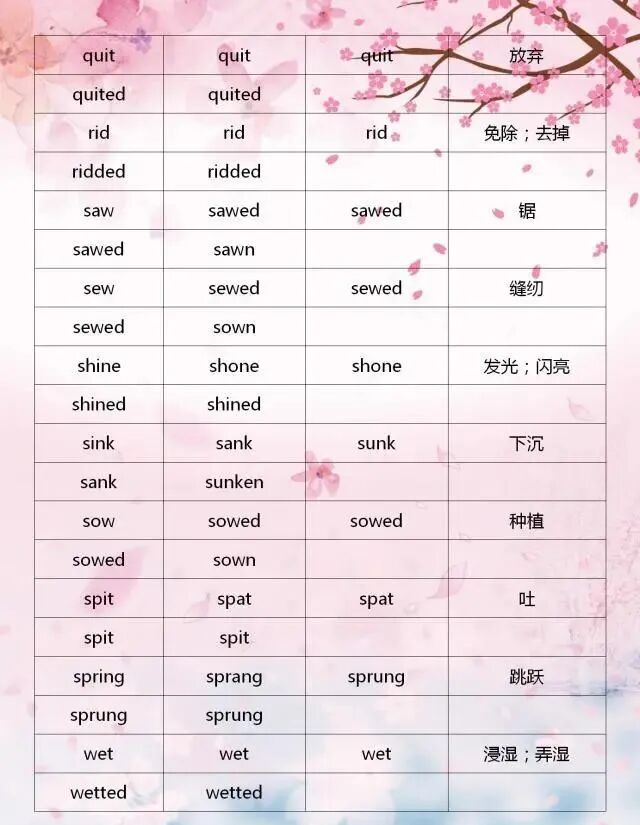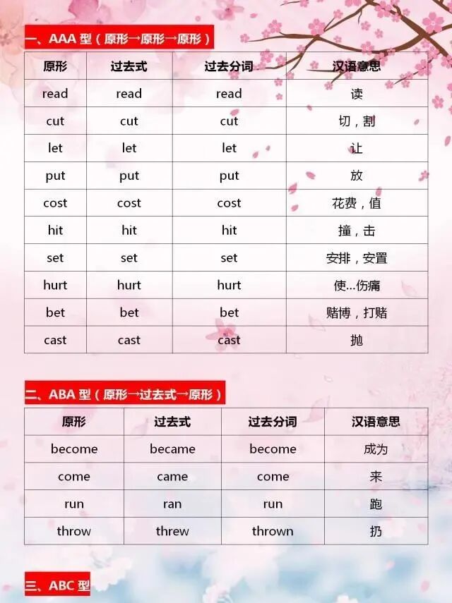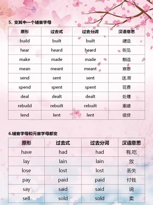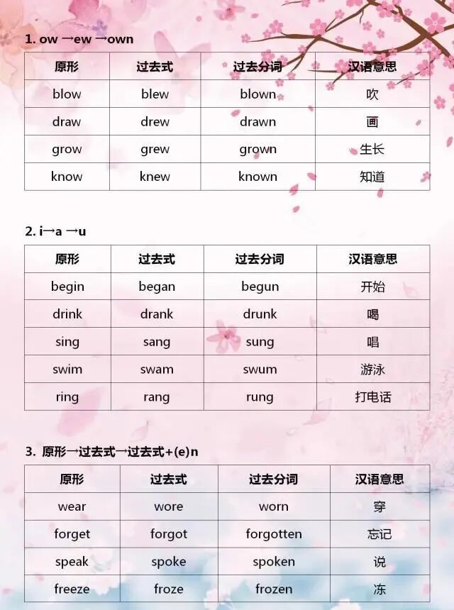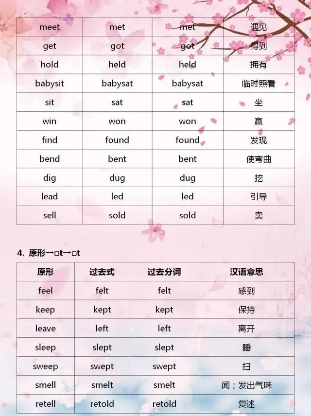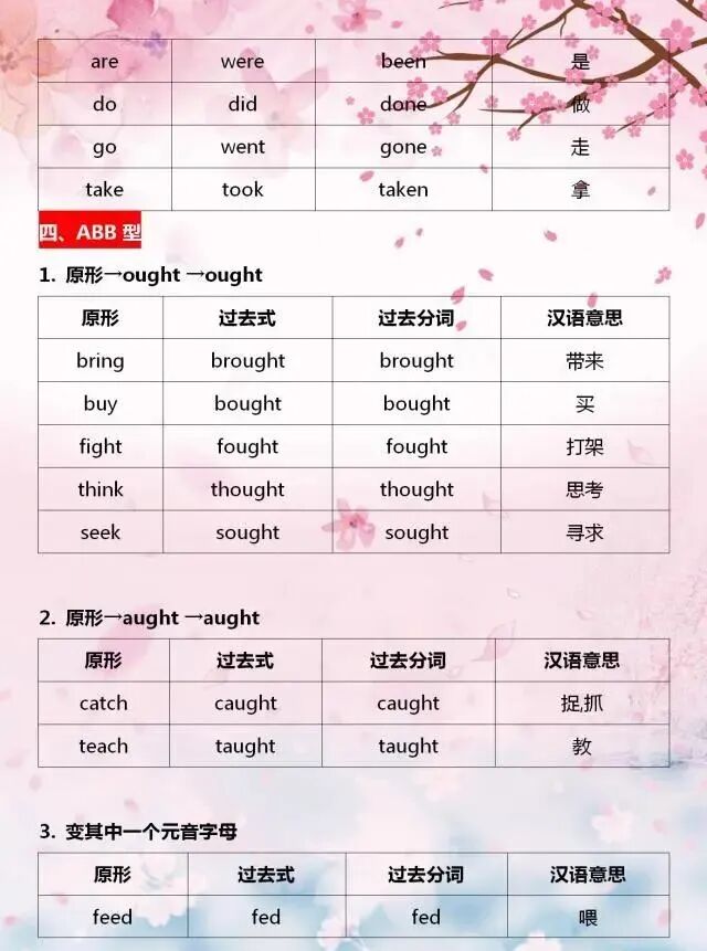 今天分享一位“鬼才”老師整理的不規則動詞變化表,表格巧用分類記憶的方法,利用不規則動詞變化中的相似性,進行分類記憶,可以幫助孩子們快速記熟。