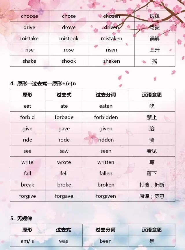這是英語中的一個知識重點,如果沒有掌握好,就會在寫作、閱讀的過程中出現錯誤,在小編老師遇到的學生中,有些到瞭高中、大學都還沒掌握好,寫作中要用到過去式和過去分詞形式的時候,他們統一加“-ed”,結果導緻扣分,這是一種低級錯誤。所以,同學們一定要記熟、掌握好。