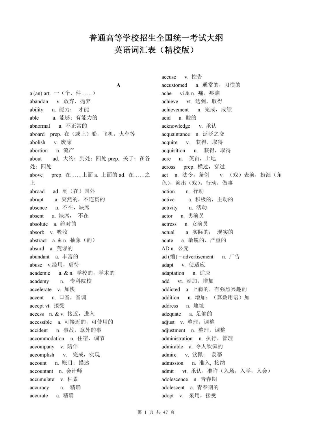 2021年高考英語考試大綱詞彙表(圖片版)