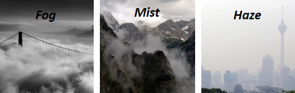 Mist和fog是由空氣中的小水滴造成的,它們倆區分的條件是你能看清楚的距離有多遠。如果你看不到超過1000米的航空視野範(fàn)圍,看不到超過200米的城市視野範(fàn)圍,這種情況被稱(chēng)爲fog。如果您能看到的視野範(fàn)圍更多,那就是mist(薄霧)。