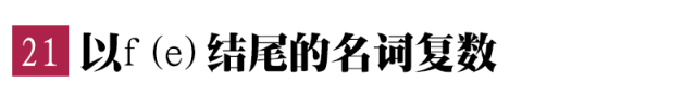 注:順口溜中的黑體字是中學階段學過的九個以上-f(s)結尾的名詞:wife(妻子),knife(小刀),wolf(狼),thief(小偷),shelf(架子),self(自己),life(生命),half(一半),leaf(樹葉)。這九個詞變複數時,都是改-f(e)爲ve再加-s。由self構成的複合詞,其變化與self相同(如myself→ourselves;yourself→yourselves;himelf,herself,itself→themselves)。