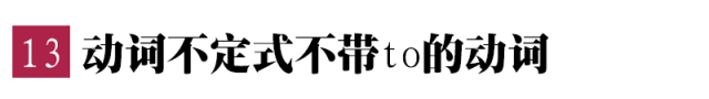按:在上述動詞後做賓(bīn)語補(bǔ)語用的不定式不帶to。