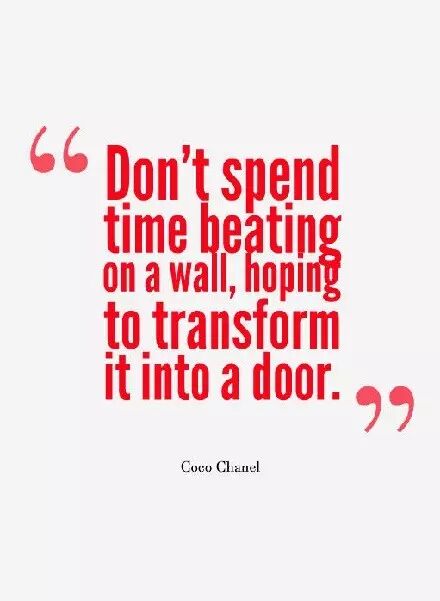 2、“Don’t spend time beating on a wall, hoping to transform it into a door.” — Coco Chanel