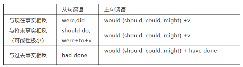 虛拟條件句及其主句的謂語形式可歸(guī)納(nà)如下: