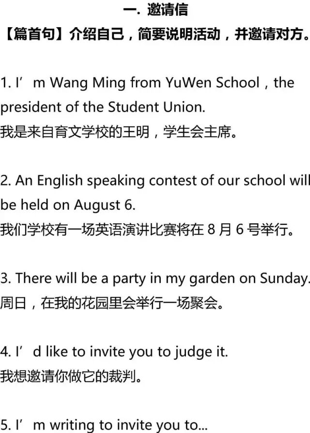 很多童鞋說寫英語作文時不知道如何下手,今天小編整理的這篇文章彙集瞭邀請信、建議信、口頭通知、申請信、投訴信和道歉信的寫作重點,相信對你的英語寫作會有直接的幫助。