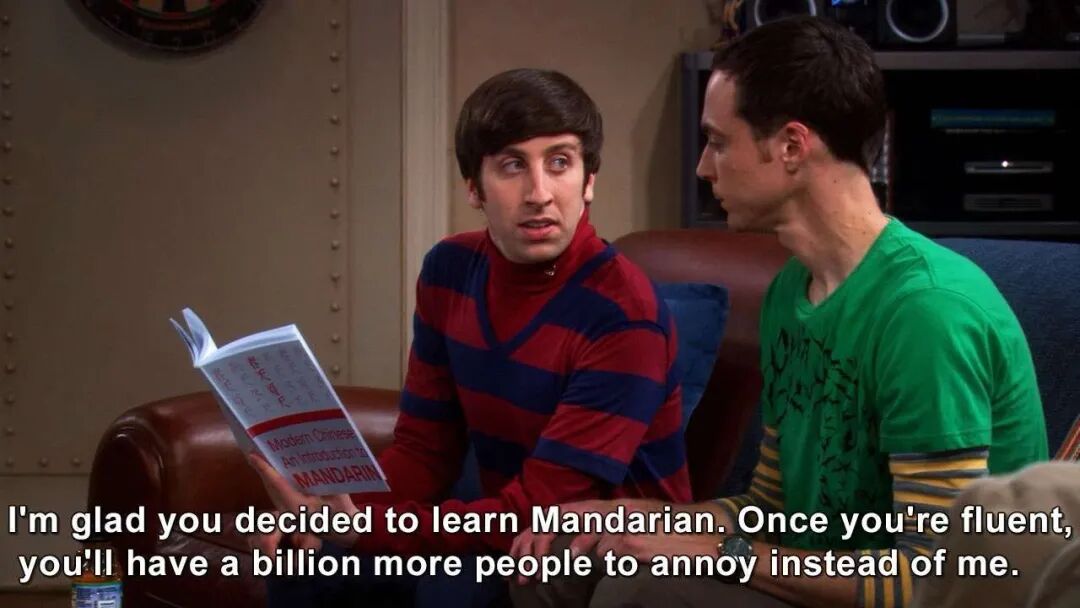 “You know, I'm really glad you decided to learn Mandarin.” “Why?” “Once you're fluent, you'll have a billion more people to annoy instead of me.”