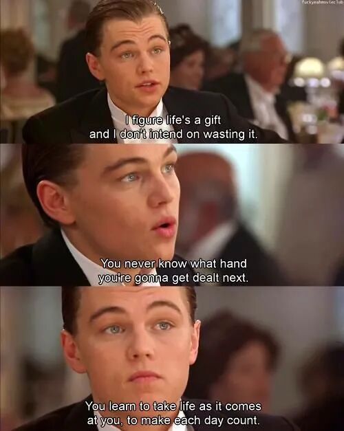 I figure life is a gift and I don't intend on wasting it. You never know what hand you're going to get dealt next. You learn to take life as it comes at you.