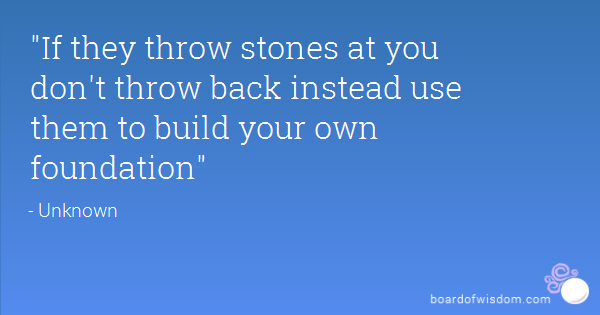 If they throw stones at you, don't throw back, instead use them to build your own foundation.