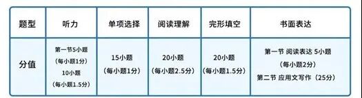 2021年新高考英語試卷結構