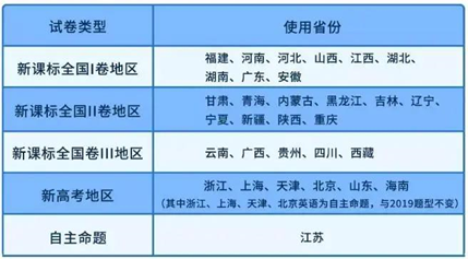 2020年全國高考英語各省市試卷使用情況